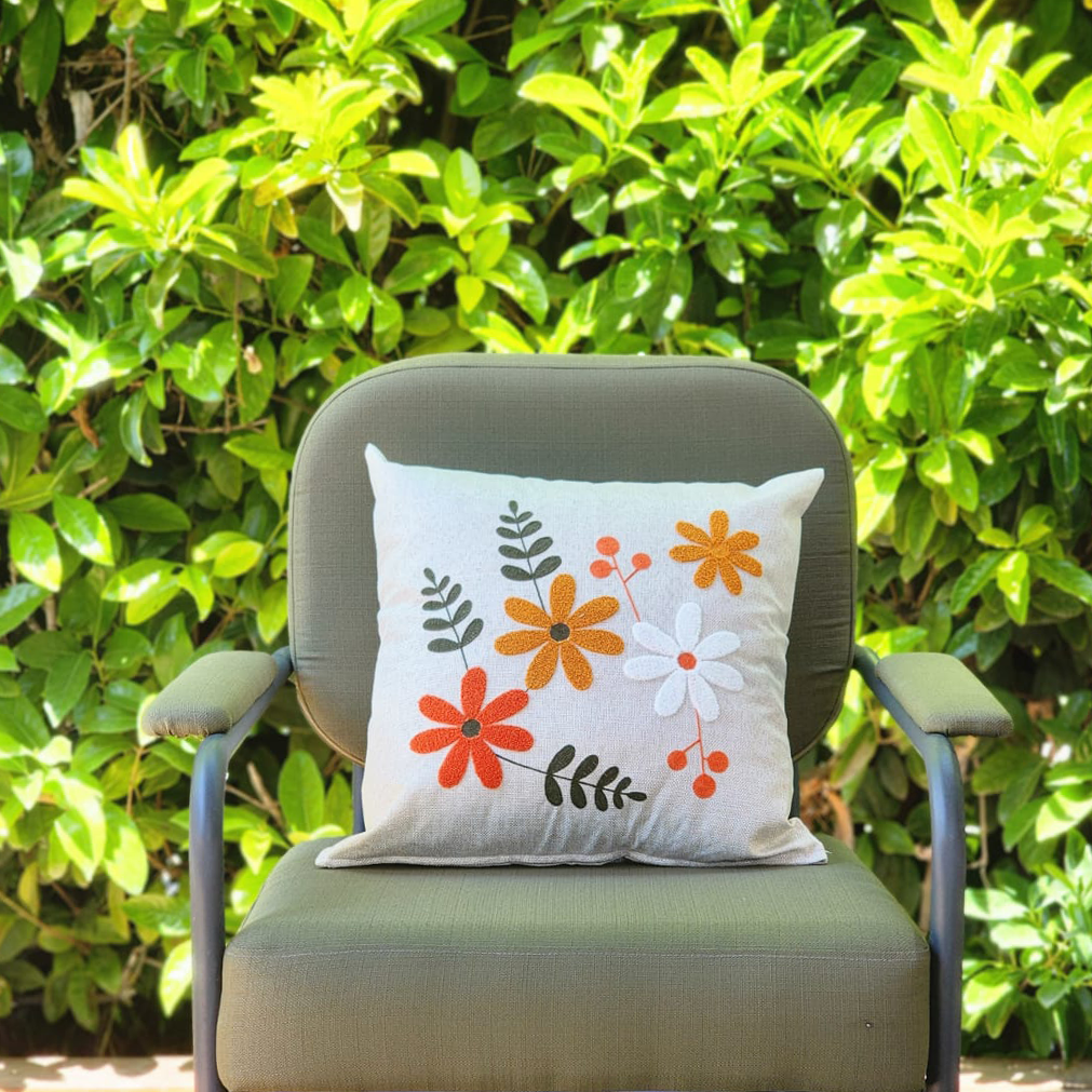🧵 Doğal Çiçek Bahçesi Desenli Punch Kırlent Kılıfı – 43x43 cm