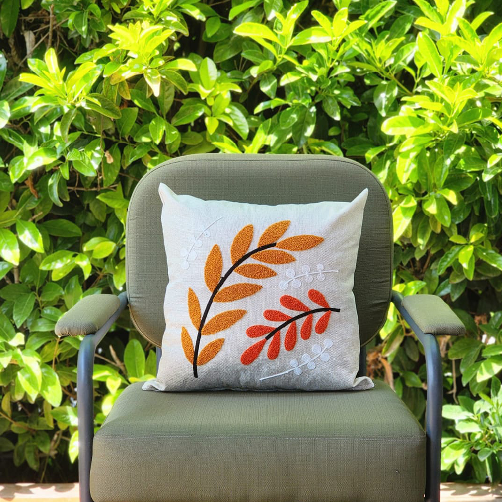 🧵 Sonbahar Dalları Desenli Punch Kırlent Kılıfı – 43x43 cm